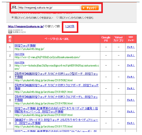 優良なコンテンツを配信しているサイトならば自然に被リンクも増えていきますが、明らかにアフィリエイト目的とわかるようなサイトではこれだけの数の被リンクを自然に受けるのは、まず不可能ですね。