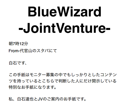 その、同一かと思われるオファーが以前白石氏が、期間限定で募集をかけていたコチラ