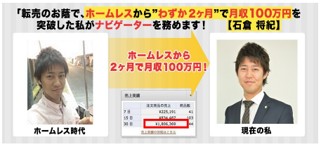 いくらなんでもホームレスから、転売で月収100万達成は煽りすぎでしょう^^;
