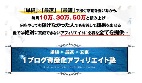 高額塾系なんですが、一つの資産型サイトを作る力を養うというものです。